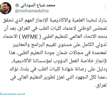 دولة رئيس الوزراء يبارك لوزارة التعليم العالي والمؤسسات الأكاديمية هذا المنجز الكبيرجامعة القادسية123/02/2024