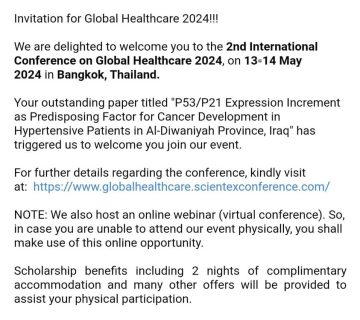 تدريسية من كلية الصيدلة بجامعة القادسية تتلقى دعوة للمشاركة بمؤتمر في تايلندجامعة القادسية120/02/2024تلقت التدريسية في كلية الصيدلة ا.د.زينب عدنان حاتم دعوة للمشاركة في مؤتمر Global healthcare 2024 والذي سيعقد في بانكوك، تايلند ... اقرأ أكثر