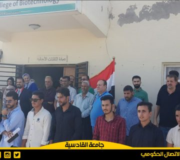 كلية التقانات الاحيائية في جامعة القادسية تنضم وقفة تضامنية لنصرة الشعب الفلسطينيجامعة القادسية118/10/2023نظمت كلية التقانات الاحيائية بجامعة القادسية وقفة تضامنية مع الشعب الفلسطيني احتجاجا على ما يقوم به الاحتلال الاسرائيلي من جرائم ... اقرأ أكثر