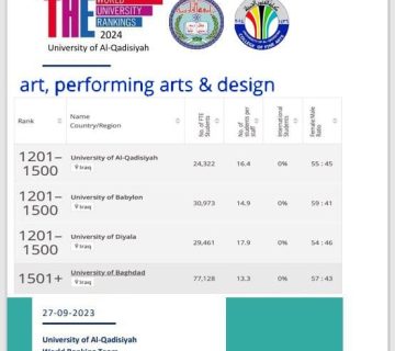 كلية الفنون الجميلة في جامعة القادسية تسجل المرتبة الاولى في حقل الفنون بين كليات الفنون الجميلة في الجامعات العراقية الداخلة في تصنيف التايمزجامعة القادسية112/10/2023سجلت كلية الفنون الجميلة جامعة القادسية المرتبة الاولى في حقل الفنون بين كليات الفنون التي تنافست ضمن الجامعات الداخلة في ... اقرأ أكثر