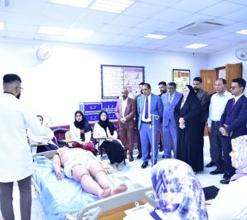رئيس جامعة القادسية يصطحب السيدة رئيس لجنة الصحة في مجلس محافظة الديوانية لزيارة المحاضرات العملية في كلية التمريض.