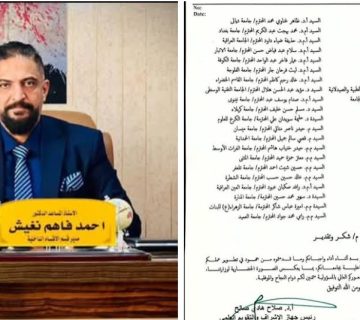 مدير قسم شؤون الاقسام الداخلية بجامعة القادسية يمنح كتاب شكر وتقدير من رئيس جهاز الاشراف والتقويم العلميجامعة القادسية116/04/2025منح السيد مدير قسم شؤون الاقسام الداخلية الاستاذ المساعد الدكتور احمد فاهم نغيش كتاب شكر وتقدير من السيد رئيس جهاز ... اقرأ أكثر