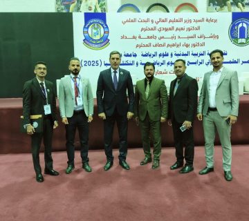 نخبة من اساتذة كلية التربية البدنية وعلوم الرياضة بجامعة القادسية يُشاركون في وقائع المؤتمر العلمي الدولي الرابع لعلوم الرياضة والتكنولوجيا في جامعة بغداد
