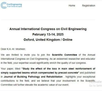 تدريسية في كلية الهندسة بجامعة القادسية تتلقى دعوة للانضمام الى المؤتمر الدولي السنوي للهندسة المدنية في المملكة المتحدةجامعة القادسية105/10/2024تلقت التدريسية في قسم الهندسة المدنية بكلية الهندسة جامعة القادسية ا.م.د خمائل عبد المهدي مشير دعوة للانضمام الى اللجنة العلمية ... اقرأ أكثر