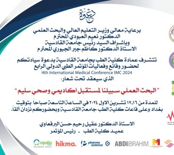 دعوة للمؤتمر الطبي الدولي الرابع في كلية الطب جامعة القادسيةجامعة القادسية103/10/2024#دعوة #المؤتمر_الطبي_الدولي_الرابع #كلية_الطب_جامعة_القادسية تدعوكم كلية الطب بجامعة القادسية الى المشاركة بالمؤتمر الطبي الدولي الرابع المزمع عقده في 16-17 / 10 ... اقرأ أكثر