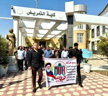 كلية التمريض بجامعة القادسية تنظم وقفة حداد على روح الشهيد حســ.ـن نصــ.ـر الله ووقفة تضامنية مناهضة للتوحش الصه يو نـي وتطلق حملة إنسانية لإغاثة الشعب اللبنـ.ـاني