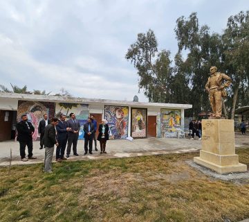 رئيس جامعة القادسية يفتتح تمثال الرسام العراقي الراحل فائق حسن في مدخل بناية الاقسام العلمية في كلية الفنون الجميلة