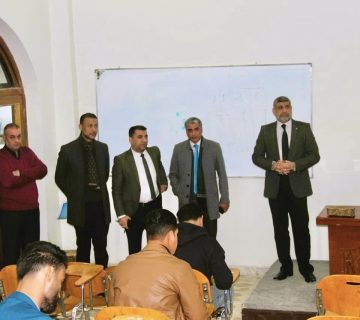 مساعد رئيس الجامعة للشؤون العلمية يجري زيارة تفقدية للقاعات الامتحانية في كلية القانون برفقة لجنة المتابعة المركزية