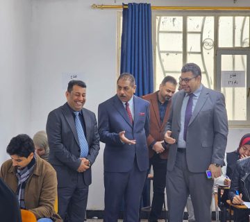 مساعد رئيس الجامعة للشؤون العلمية يجري زيارة تفقدية للقاعات الامتحانية في كلية طب الاسنان برفقة لجنة المتابعة المركزية