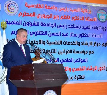 مركز الارشاد والخدمات النفسية والاجتماعية بجامعة القادسية يعقد المؤتمر العلمي الدولي الثاني بمشاركة اكاديمية واسعة.جامعة القادسية310/05/2024برعاية السيد رئيس جامعة القادسية الاستاذ الدكتور كاظم جبر الجبوري واشراف السيد مساعد رئيس الجامعة للشؤون العلمية الاستاذ الدكتور ستار ... اقرأ أكثر