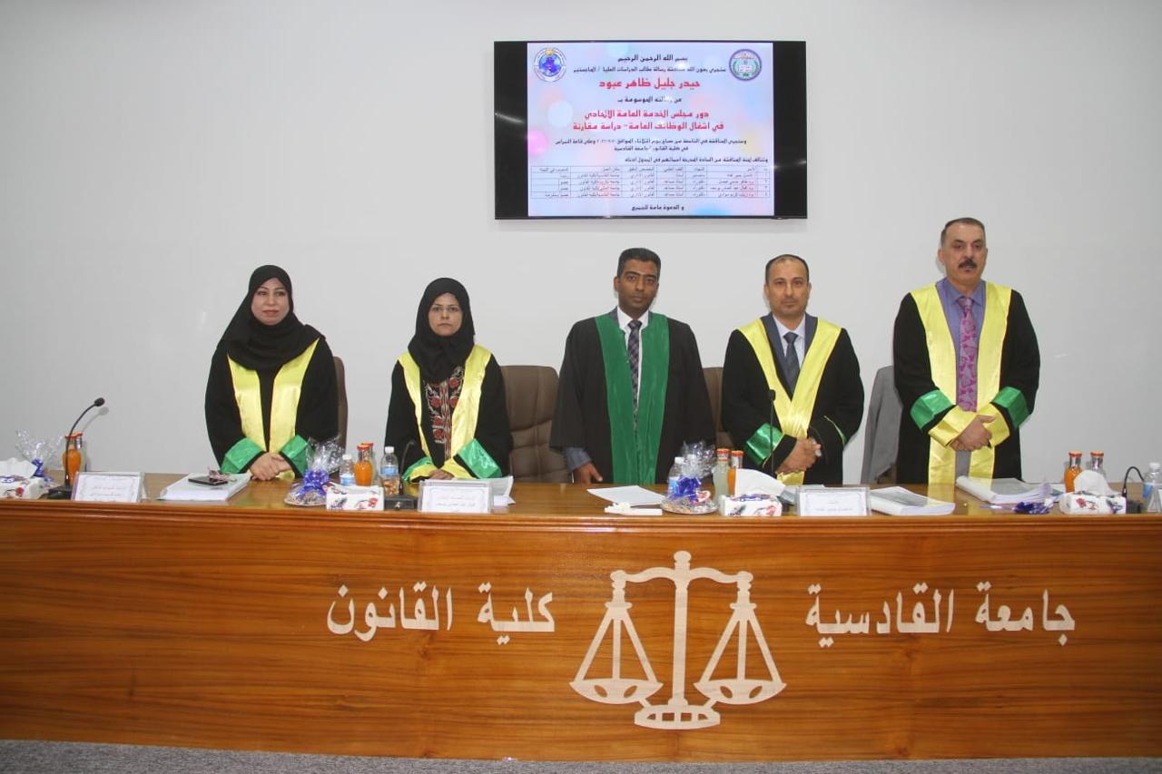 رسالة ماجستير في كلية القانون بجامعة القادسية ناقشت (دور مجلس الخدمة العامة الاتحادي في اشغال الوظائف العامة _ دراسة مقارنة)Admin20/09/2022 ناقشت رسالة الماجستير في كلية القانون بجامعة القادسية (دور مجلس الخدمة العامة الاتحادي في اشغال الوظائف العامة _ دراسة ... اقرأ أكثر