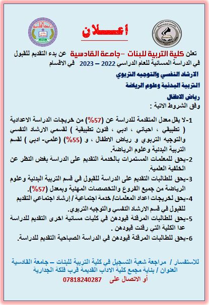 كلية القانون بجامعة القادسية تعلن بدأ التقديم للدراسة المسائية