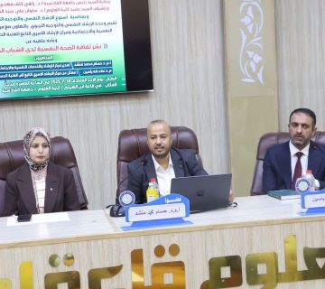 كلية العلوم بجامعة القادسية تقيم ورشة علمية حول نشر ثقافة الصحة النفسية لدى الشباب الجامعيجامعة القادسية130/11/2025 برعاية السيد رئيس جامعة القادسية الاستاذ الدكتور راهي كلف مهدي الياسري وبإشراف السيد عميد كلية العلوم الاستاذ الدكتور ... اقرأ أكثر