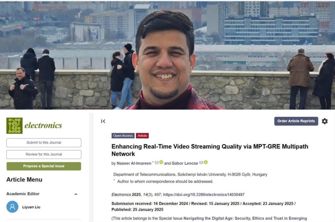 نشر التدريسي نصير عبد الحسين جبار العمراني من قسم علوم الحاسوب في كلية علوم الحاسوب وتكنولوجيا المعلومات جامعة القادسية بحثاً علميا مشتركا موسوما بـ(Enhancing Real-Time Video Streaming Quality via MPT-GRE Multipath Network) في مجلة Electronics والمفهرسة ضمن الربع الثاني (Q2) في قاعدة بيانات سكوباس (Scopus) مع citescore 5.3 ومن مجلات قاعدة بيانات clarivate بمعامل تاثير 2.6