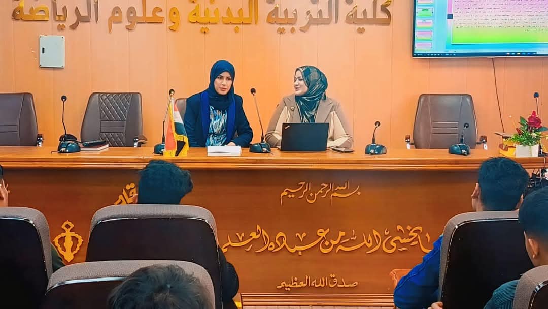 اقامت وحدة الارشاد النفسي والتربوي في كلية التربية البدنية وعلوم الرياضة دورة ارشادية بعنوان (الانحرافات السلوكية والفكرية لدى طلبة الجامعات وسبل معالجتها) حاضر فيها م.د. رؤى عباس اسيود وم.م. بيان نجم عبد