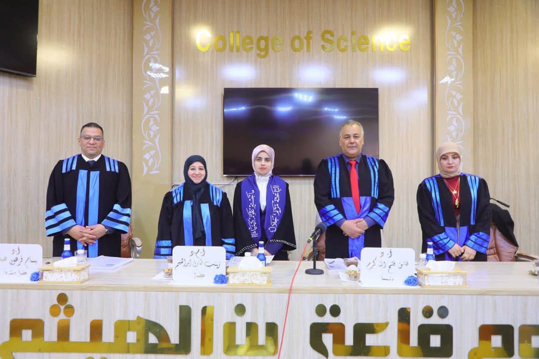 نوقشت رسالة الماجستير في قسم الكيمياء بكلية العلوم جامعة القادسية الموسومة بـ(فحص بعض المواد المنشطة في الادرار البشري باستخدام طريقتي الفلورة وكروماتوغرافيا السائل عالية الأداء) للطالبة مريم جلال خنطيل وبإشراف الأستاذ الدكتور بسام فرعون عبد