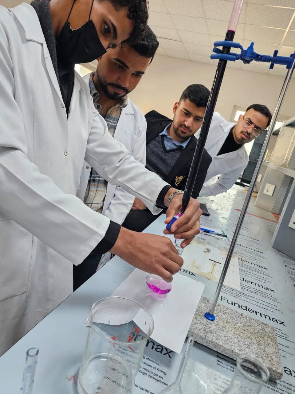 هدفت الورشة إلى كيفية تحديد نقاوة بيروكسيد الهيدروجين (H₂O₂) باستخدام طرق المعايرة المبنية على تفاعلات الأكسدة والاختزال كذلك سيتم التركيز على التفاعل مع برمنغنات البوتاسيوم (KMnO₄) كمؤكسد في وسط حمضي، والذي يعد من أكثر الطرق دقة في الكيمياء الصيدلانية