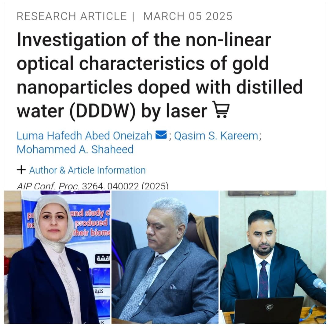 نشر كل من م.د.قاسم ستار كريم وم.د.لمى حافظ عبد وم.م. محمد عامر شهيد بالبحث الموسوم