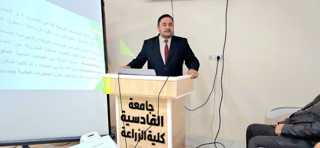 برعاية السيد رئيس جامعة القادسية الاستاذ الدكتور راهي كلف مهدي الياسري وبإشراف السيد عميد كلية الزراعة الاستاذ الدكتور حياوي ويوة عطية الجوذري اجريت في كلية الزراعة مناقشة بحوث التخرج لطلبة المرحلة الرابعة للعام الدراسي٢٠٢٤_٢٠٢٥