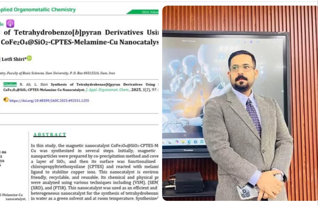 نشر التدريسي من كلية طب الأسنان بجامعة القادسية م.م. رضوان علي كاطع بحثًا علميًا متميزًا في مجلة عالمية رصينة مصنّفة ضمن مستوعبات Scopus ويحمل البحث عنوان (تخليق مشتقات رباعي هيدرو بنزوات البيران باستخدام محفز نانوي قابل لإعادة الاستخدام من CoFe₂O₄@SiO₂-CPTES-ميلامين-نحاس