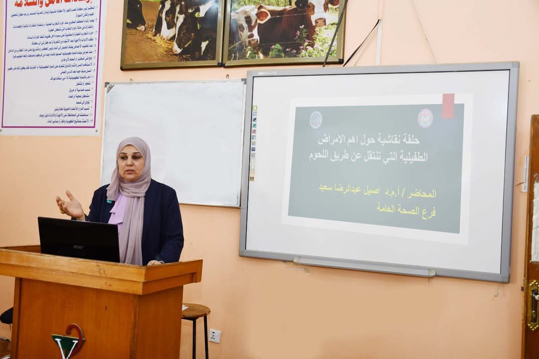 برعاية الأستاذ الدكتور راهي كلف مهدي الياسري رئيس جامعة القادسية وبإشراف الأستاذ الدكتور منير عبد الأمير عبد الفتلاوي عميد كلية الطب البيطري اقام فرع الصحة العامة في الكلية حلقة نقاشية حول عن اهم الامراض الطفيلية التي تنتقل عن طريق اللحوم حاضر فيها ا.م.د اصيل عبدالرضا سعيد