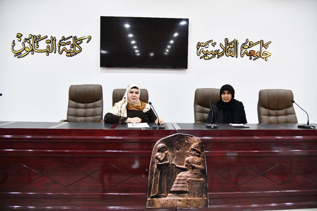 أقامت وحدة شؤون المرأة بالتعاون مع وحدة الارشاد التربوي والنفسي ووحدة التأهيل والتوظيف في كلية القانون بجامعة القادسية الورشة العلمية الموسومة بــ (التحديات والحلول القانونية لضمان حقوق المرأة في بيئة العمل) حاضر فيها أ.م.د. سندس محمد عباس و م.د. ليلى حمزة