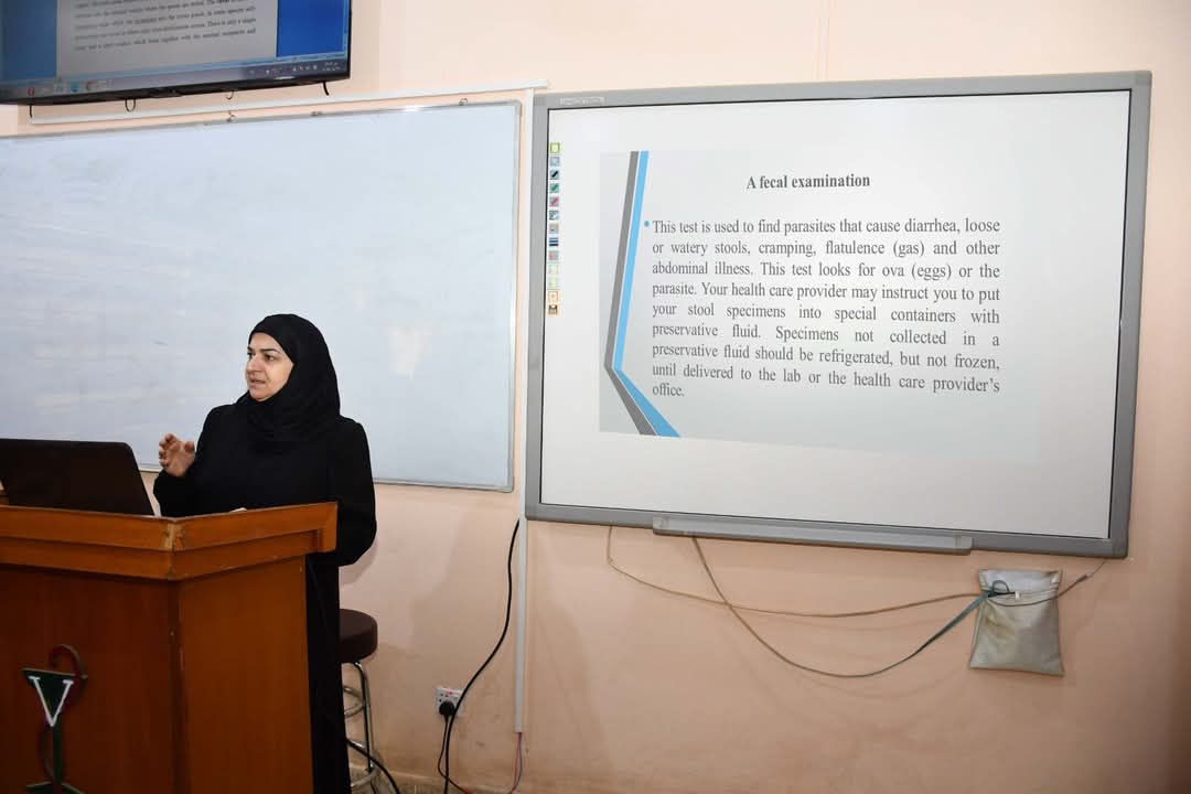 هدفت الدورة الى تعريف المشاركين بأهم الطرق التقليدية الضرورية لتشخيص الطفيليات ومنها طريقة فحص البراز وطريقة فحص الدم وغيرها ففي طريقة فحص البراز يُستخدم هذا الاختبار للكشف عن الطفيليات التي تُسبب الإسهال، يبحث هذا الاختبار عن البويضات أو الطفيليات، من امثلة الامراض الطفيلية التي تشخص بهذا الاختبار مرض الابواغ الخبيئة، والكوكسيديا، والجارديا وغيرها الكثير