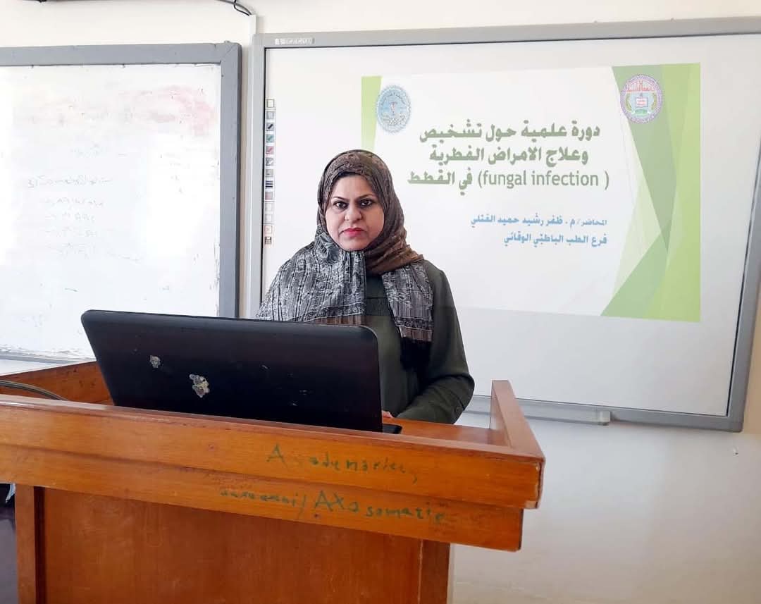 بإشراف الأستاذ الدكتور منير عبد الأمير عبد الفتلاوي عميد كلية الطب البيطري اقام فرع الطب الباطني في الكلية دورة تدريبية بعنوان (تشخيص وعلاج الامراض الفطرية fungal infection في القطط ) حاضر فيها م . ظفر رشيد حميد الفتلي