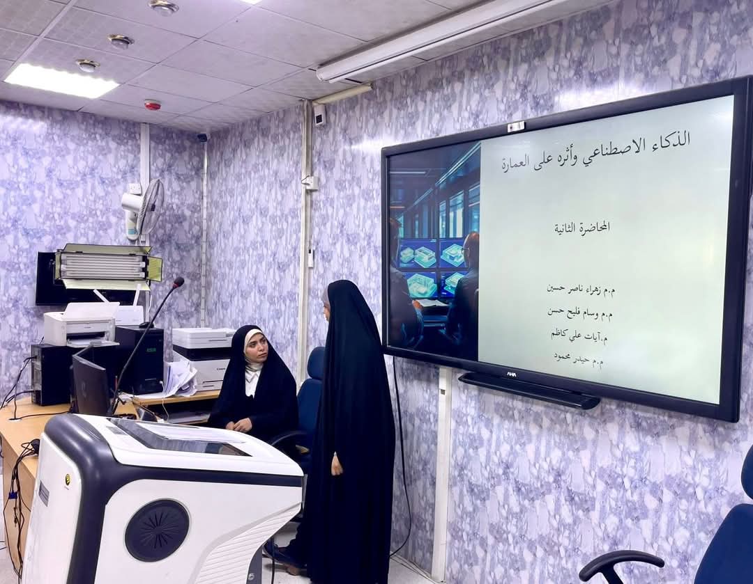 اقامت شعبة التطوير في مركز التعليم المستمر بالتعاون مع قسم الاعمار والمشاريع في رئاسة الجامعة دورة تدريبية بعنوان (( الذكاء الاصطناعي وأثره على العمارة ))