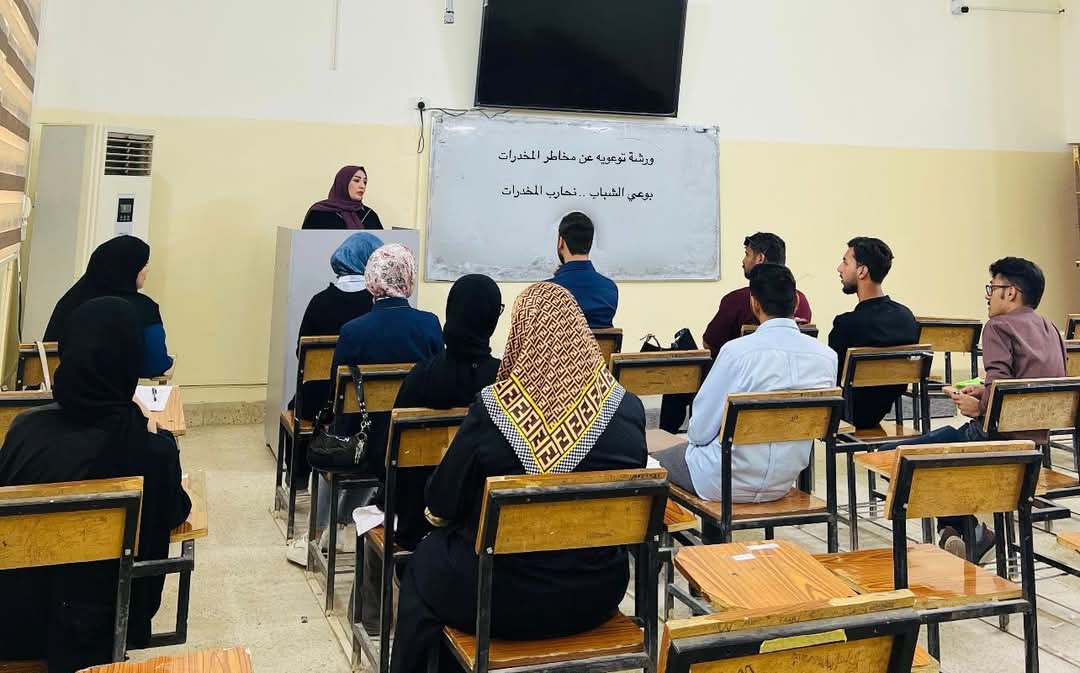 برعاية الاستاذ الدكتور راهي كلف مهدي الياسري رئيس جامعة القادسية وبإشراف الاستاذ الدكتور منير عبد الامير عبد الفتلاوي عميد كلية الطب البيطري اقام فرع التشريح والانسجة في الكلية ورشة علمية حول مخاطر المـ.ـخدرات وتأثيرها السلبي على المجتمع حاضر فيها م.د. زينة هادي عباس