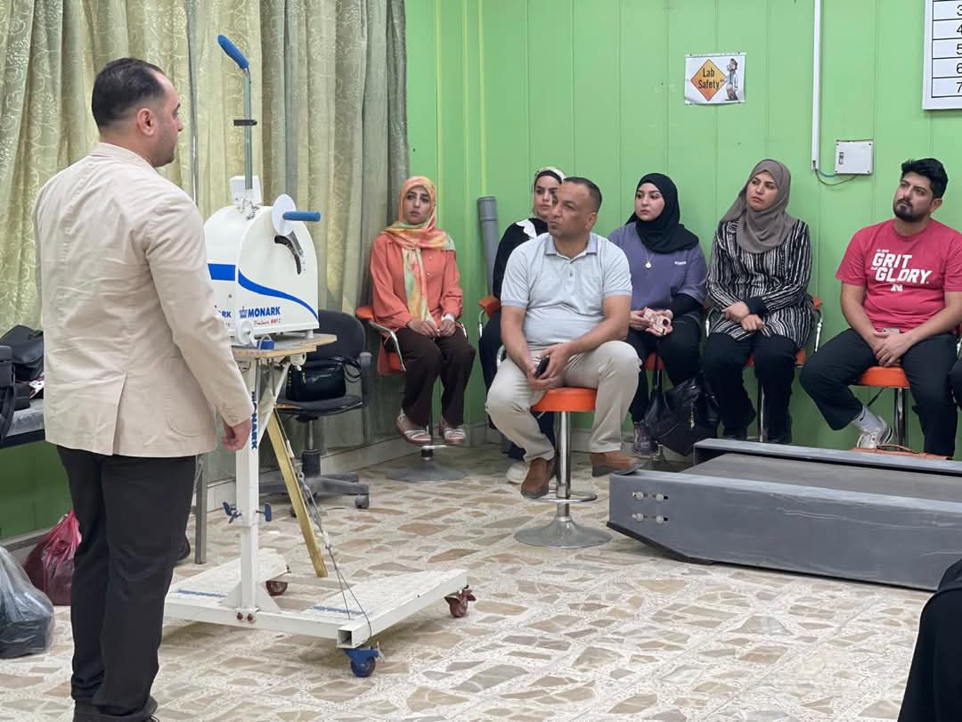 اقامت كلية التربية البدنية وعلوم الرياضة بجامعة القادسية ورشة علمية بعنوان (جهاز ال K5 المتغيرات الوظيفية التي يقيسها اثناء الجهد البدني) حاضر فيها أ.م.د حسن عبد الهادي لهيمص على طلبة الدراسات العليا الماجستير