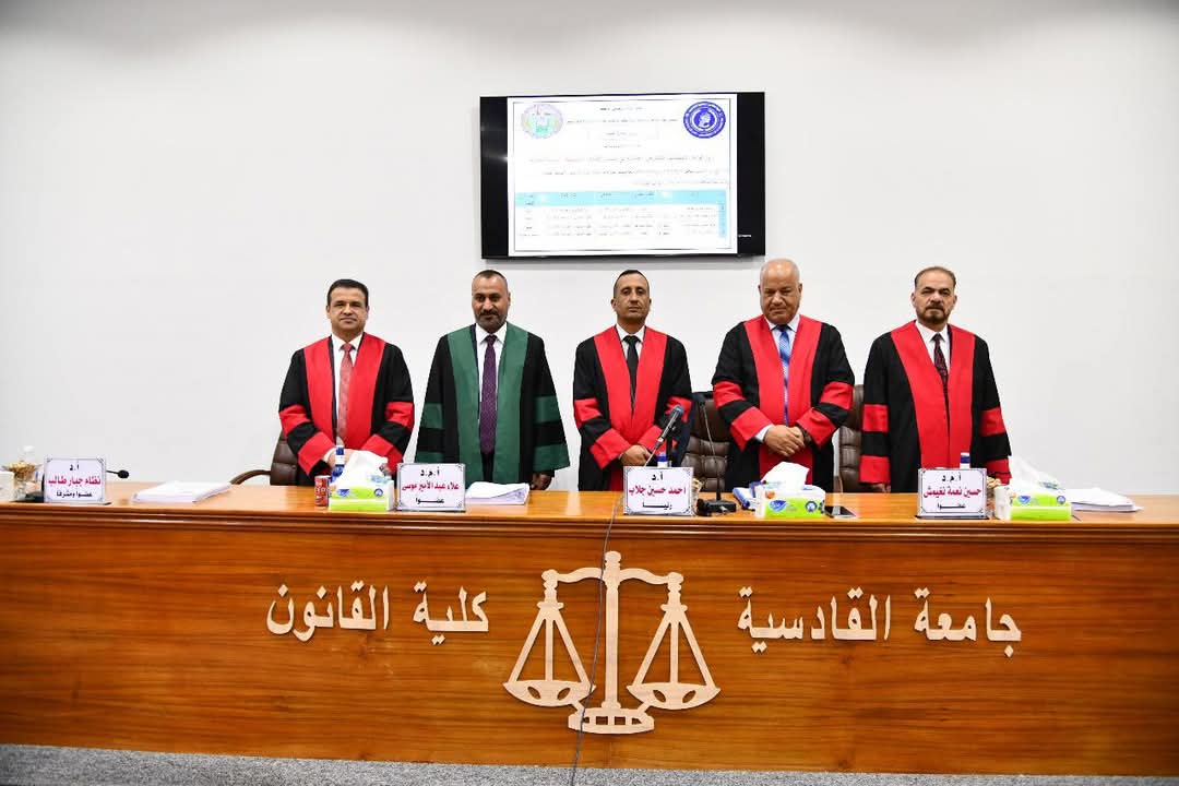 نوقشت رسالة الماجستير في كلية القانون بجامعة القادسية الموسومة بــ (دور قواعد الاختصاص التشريعي الحمائية في مسائل الأضرار البيولوجية – دراسة تحليلية ) للباحث رزاق حمزة جياد وبإشراف أ.د. نظام جبار طالب