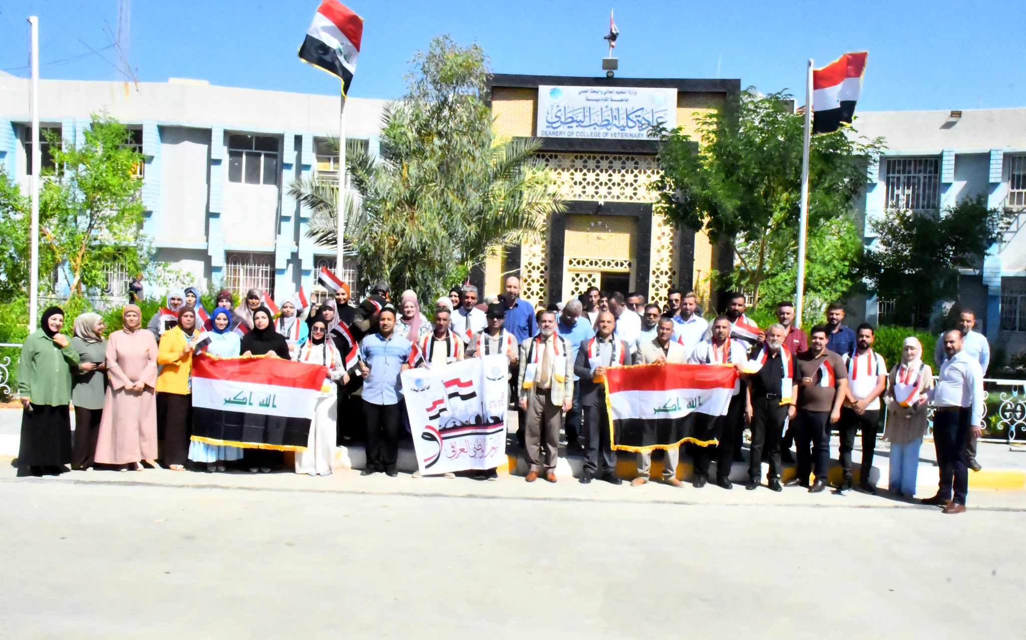 برعاية السيد رئيس جامعة القادسية الأستاذ الدكتور راهي كلف مهدي الياسري وبإشراف السيد عميد كلية الطب البيطري الأستاذ الدكتور منير عبد الامير عبد الفتلاوي نظّمت كلية الطب البيطري وقفة احتفالية بمناسبة اليوم الوطني العراقي (3 تشرين الأول) في باحة الكلية استذكاراً لمعاني الوحدة والانتماء الوطني