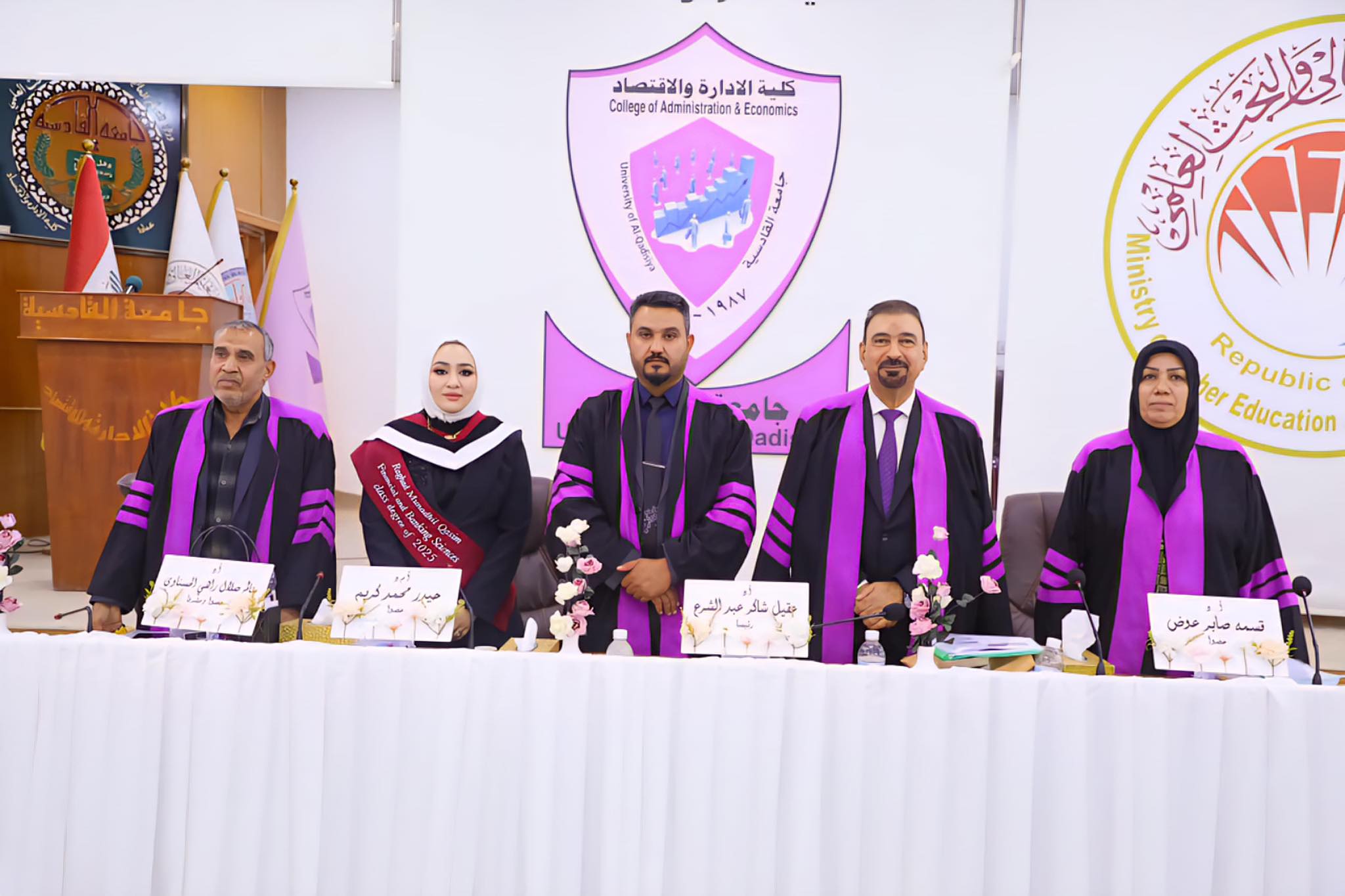 نُوقشت في قسم العلوم المالية والمصرفية بكلية الإدارة والاقتصاد جامعة القادسية رسالة الماجستير الموسومة بـ (دور نماذج تقييم أداء أسهم الشركات في بناء المحفظة الاستثمارية دراسة تطبيقية في سوق العراق للأوراق المالية للمدة (2018-2023)) للطالبة رغد مناضل قاسم وبإشراف الأستاذ الدكتور سالم صلال الحسناوي