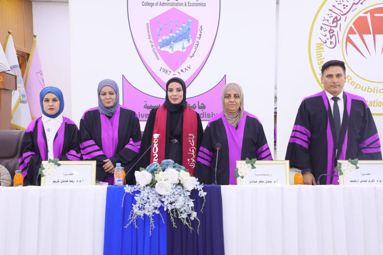 نُوقشت في قسم العلوم المالية والمصرفية بكلية الإدارة والاقتصاد جامعة القادسية رسالة الماجستير الموسومة بـ (الشمول المالي وأثره في ربحية المصارف التجارية دراسة تطبيقية في القطاع المصرفي العراقي للمدة (2014 ــ 2023 م) للباحثة رحاب فوزي عبدالسادة وبإشراف أ.م.د. خولة راضي عذاب