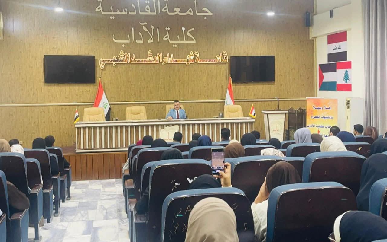 برعاية السيد رئيس جامعة القادسية الاستاذ الدكتور راهي كلف مهدي الياسري وبإشراف السيد عميد كلية الآداب الأستاذ الدكتور نبيل عمران الخالدي أقام قسم علم النفس في كلية الآداب ندوة علمية بعنوان (تأثير المـ.ـخدرات على الفرد والمجتمع ) حاضر فيها م.د ليث حمزه التميمي