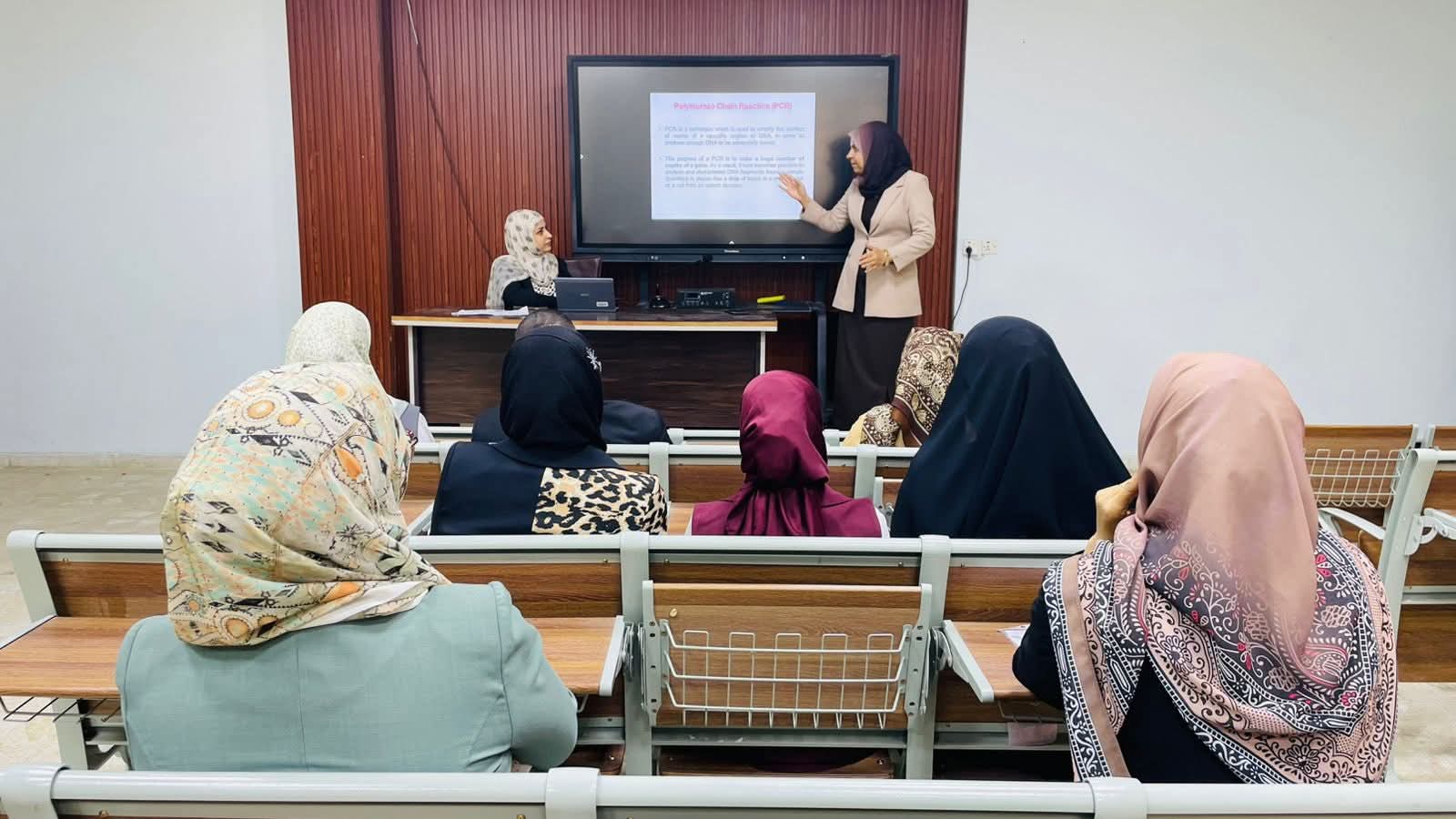 برعاية السيد رئيس جامعة القادسية الأستاذ الدكتور راهي كلف مهدي الياسري وبإشراف عميد كلية طب الأسنان الأستاذ الدكتور علي حسن علي مراد أقامت وحدة التعليم المستمر بكلية طب الأسنان دورة تدريبية بعنوان (تقنية الـPCR) حاضر فيها م.د. لمى حافظ وم.م. نور محمود