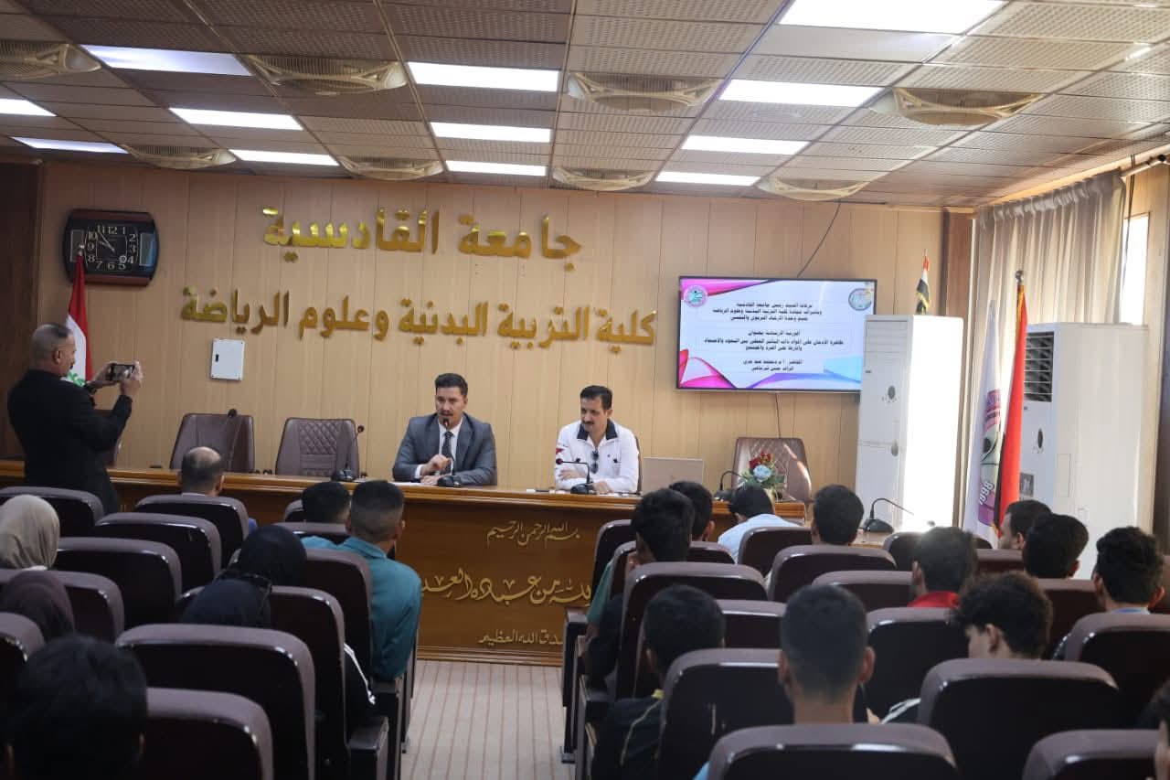 اقامت وحدة الارشاد النفسي والتربوي في كلية التربية البدنية وعلوم الرياضة وبالتعاون مع مركز الارشاد والخدمات النفسية والاجتماعية ندوة تثقيفية للتعريف باضرار المواد المخدرة وأنواعها وشرح قانون المـ.خدرات رقم (50) لسنة 2017 حاضر فيها الرائد حسن محمود شاكر شرماهي من مديرية شؤون المـ.خدرات والمؤثرات العقلية في الديوانية وأ.د محمد حاتم عبد الزهرة