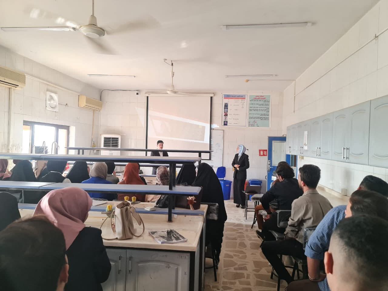 برعاية السيد رئيس جامعة القادسية الاستاذ الدكتور راهي كلف مهدي الياسري وبإشراف السيد عميد كلية العلوم الاستاذ الدكتور سلوان علي عبيد اقامت وحدة الإرشاد النفسي والتوجية الاجتماعي في كلية العلوم دورة بعنوان (ظاهرة تعاطي المـ.خدرات: الاسباب والعلاج) حاضر فيها م.م طيف مظهر مسلم وم.م حنين سعد جبار وم.م كرار مهدي بادي