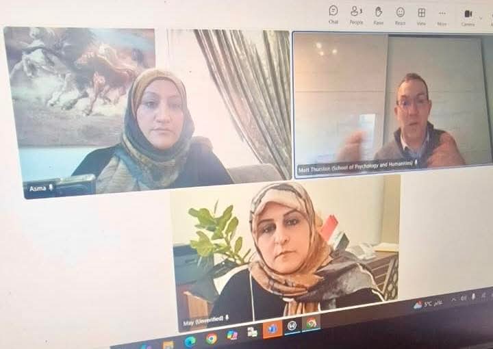 في إطار تعزيز التعاون الأكاديمي بين جامعة القادسية والجامعات العالمية، نظمت السيدة مدير قسم البعثات والعلاقات الثقافية بجامعة القادسية الدكتورة أسماء عبد الامير عبيس اجتماعاً إلكترونياً عبر منصة Teams مع جامعة لانكشير البريطانية بالتنسيق مع السيدة رئيس قسم اللغة الإنكليزية في كلية الآداب الاستاذ الدكتورة مي علي عبد الأمير لمناقشة البرامج التدريبية واختبارات IELTS.
