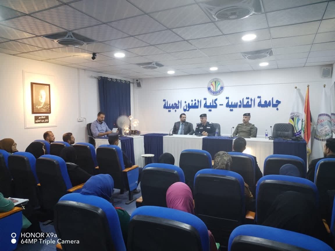 برعاية السيد رئيس جامعة القادسية الأستاذ الدكتور راهي كلف مهدي الياسري وبإشراف الأستاذ الدكتور كاظم نوير الزبيدي عقدت كلية الفنون الجميلة بجامعة القادسية ندوة علمية بعنوان (الابتزاز الإلكتروني في الجامعات العراقية) حاضر فيها المقدم عباس بردان البرقعاوي والمقدم علاء حسوني