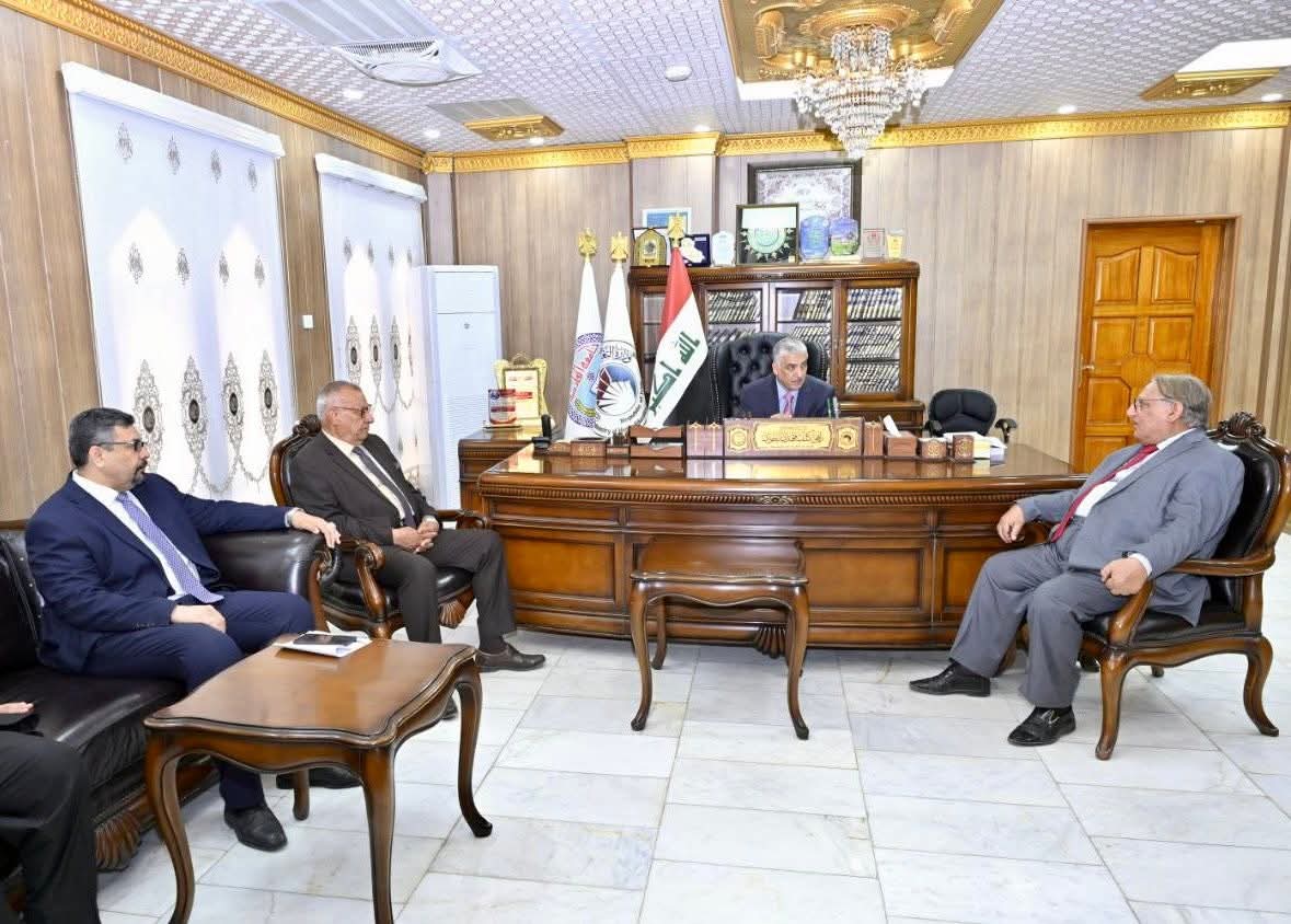 استقبل السيد رئيس جامعة القادسية الاستاذ الدكتور راهي كلف مهدي الياسري السيد رئيس قسم التربية الفنية بجامعة العين العراقية الاستاذ الدكتور فيصل عبد عودة بصحبة السيد عميد كلية الفنون الجميلة بجامعة القادسية الاستاذ الدكتور كاظم نوير الزبيدي لبحث سبل التعاون المشترك.