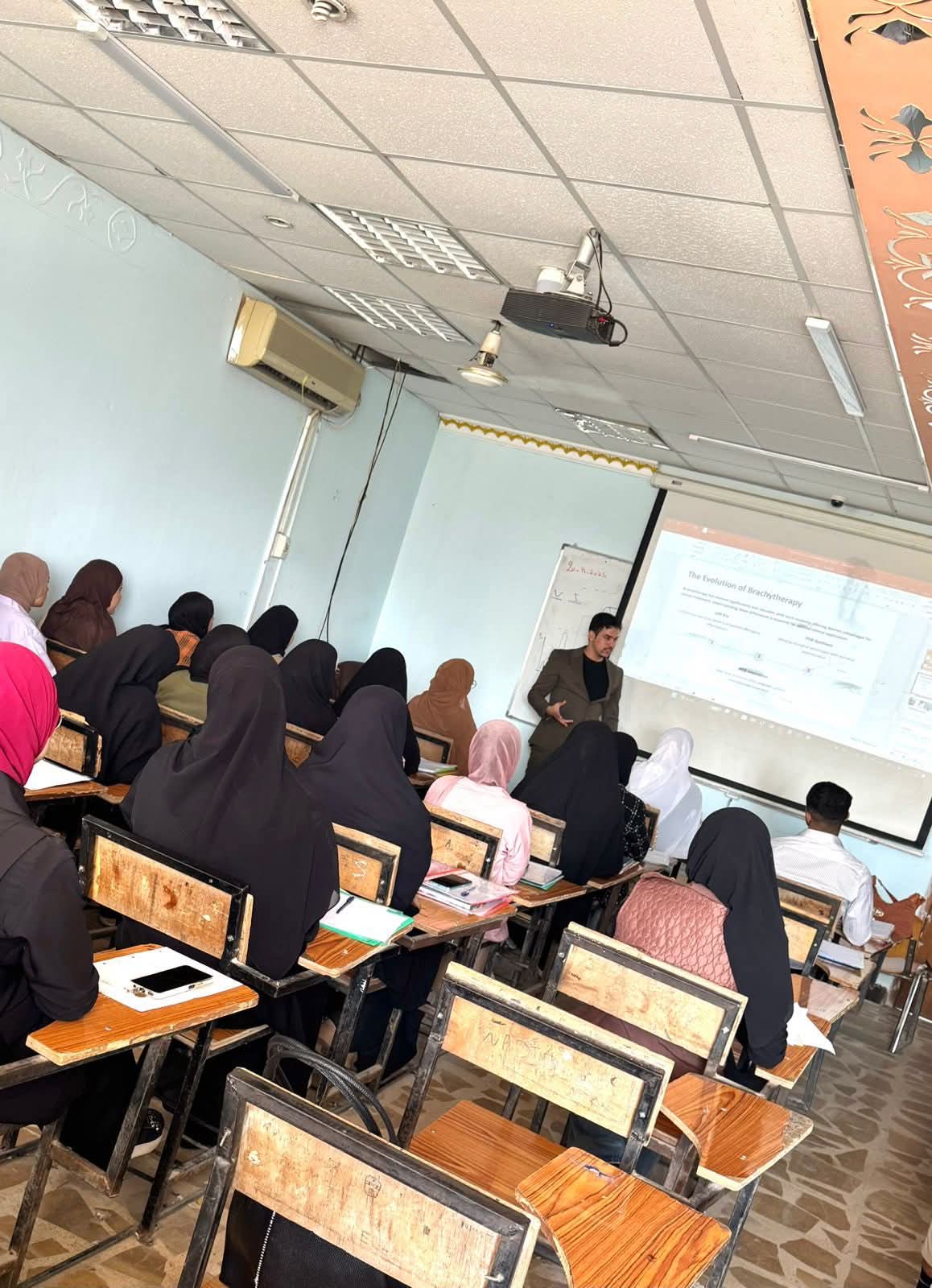برعاية السيد رئيس جامعة القادسية الأستاذ الدكتور راهي كلف مهدي الياسري وبإشراف الأستاذ الدكتور سلوان علي الحمزاوي عميد كلية العلوم نظم قسم الفيزياء الطبية في كلية العلوم دورة تدريبية بعنوان (مقدمة في أساسيات العلاج الإشعاعي) حاضر فيها م.م. كرار مهدي بادي