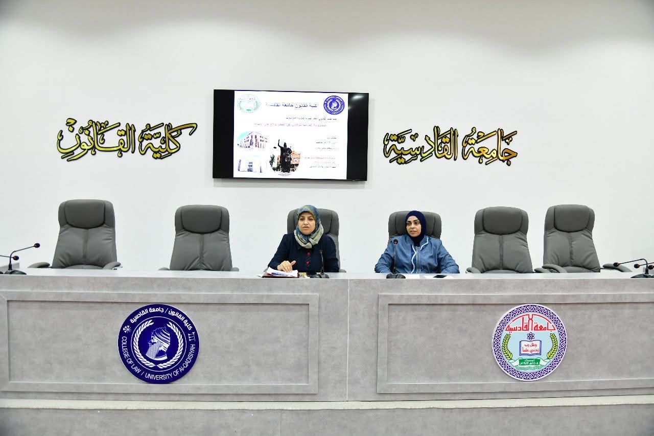 أقام قسم القانون العام في كلية القانون بجامعة القادسية الندوة العلمية الموسومة بـ (المسؤولية الجزائية للوالدين عن العنف الواقع على الأبناء) حاضر فيها أ.م.د. الاء محمد صاحب و م.د. سعاد شاكر بعيوي