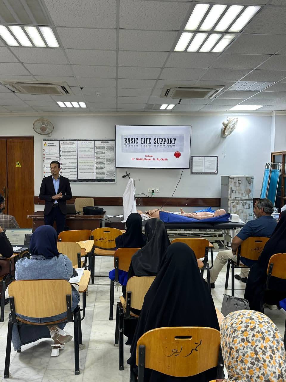 برعاية السيد رئيس جامعة القادسية الأستاذ الدكتور راهي كلف مهدي الياسري وبإشراف السيد عميد كلية التمريض الأستاذ الدكتور ضرغام مجيد الفتلاوي أقامت كلية التمريض دورة تدريبية بعنوان (أساسيات دعم الحياة)(Basic Life Support) حاضر فيها المدرس الدكتور صادق سلام حسوني