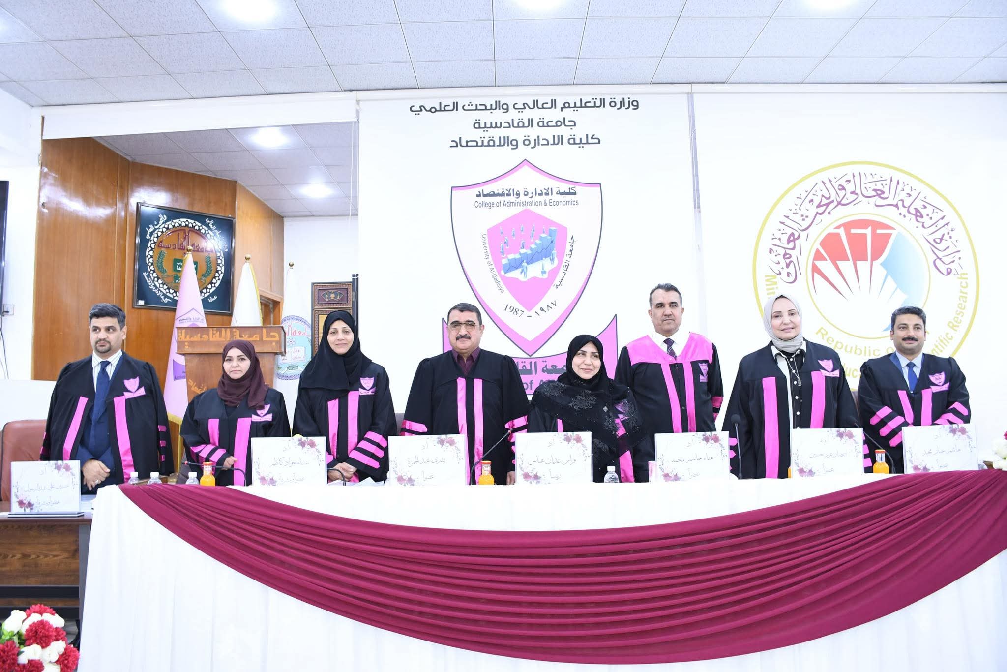 نُوقشت في قسم إدارة الأعمال بكلية الإدارة والاقتصاد جامعة القادسية أطروحة الدكتوراه الموسومة بـ (نمذجة العلاقة بين جودة المعرفة والتشارك المعرفي والتفوق التسويقي: الدور الوسيط للمعرفة الريادية) للباحث محسن علوان محمد وبإشراف الأستاذ الدكتور حسين علي عبد الرسول الجنابي والاستاذ الدكتور سناء جواد كاظم