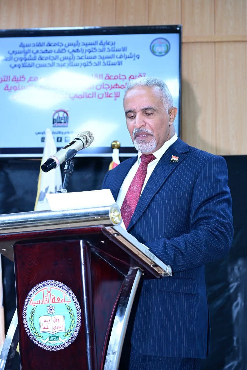 أقامت جامعة القادسية بالتعاون مع كلية التربية المهرجان المركزي بالذكرى السنوية للإعلان العالمي لحقوق الانسان بحضور السيد المساعد العلمي والسادة عمداء الكليات ورؤساء الاقسام العلمية واعضاء الهيأة التدريسية والطلبة في قاعة الدكتور الوائلي في كلية التربية.