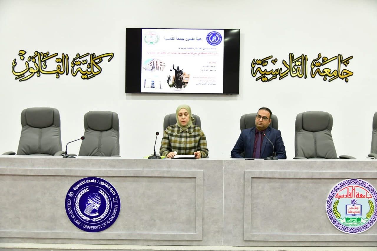 اقام قسم القانون العام في كلية القانون بجامعة القادسية الندوة العلمية الموسومة بـ (تأثير الذكاء الاصطناعي على قواعد المسؤولية الدولية عن الافعال غير المشروعة) حاضر فيها أ.د. بيداء علي ولي و م.م. حيدر عبد هدابي