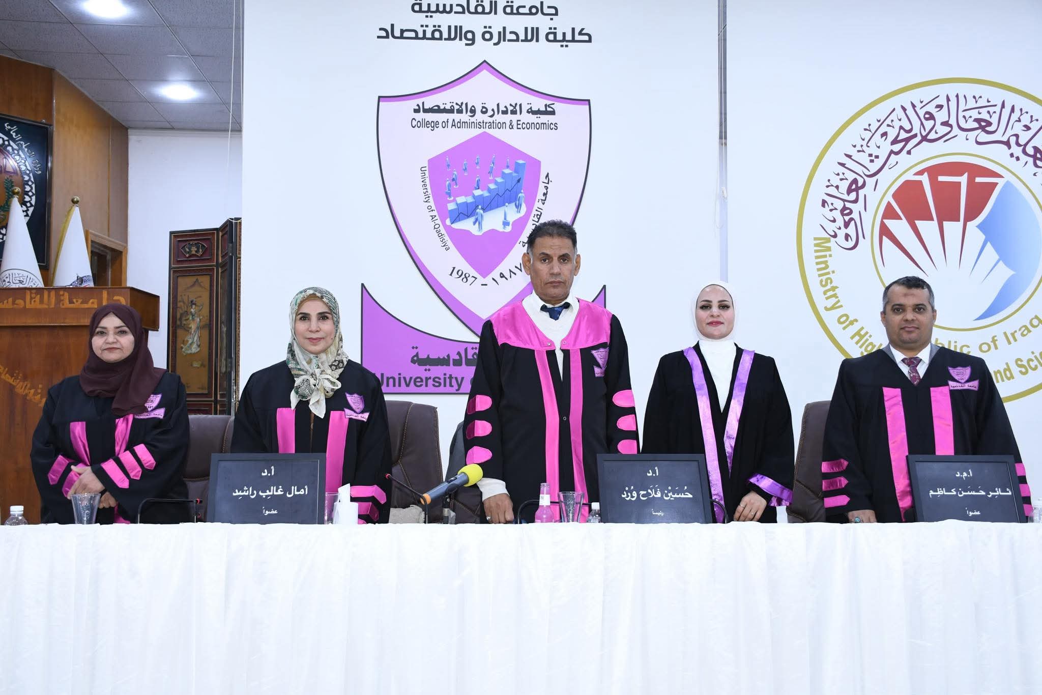 نُوقشت في قسم إدارة الاعمال بكلية الإدارة والاقتصاد جامعة القادسية رسالة الماجستير الموسومة بـ (دور القابلية الامتصاصية للمعرفة والتعلم الريادي في تعزيز ثقة الزبون) للباحثة أسماء قاسم جمعة وبإشراف الأستاذ الدكتورة سناء جواد كاظم
