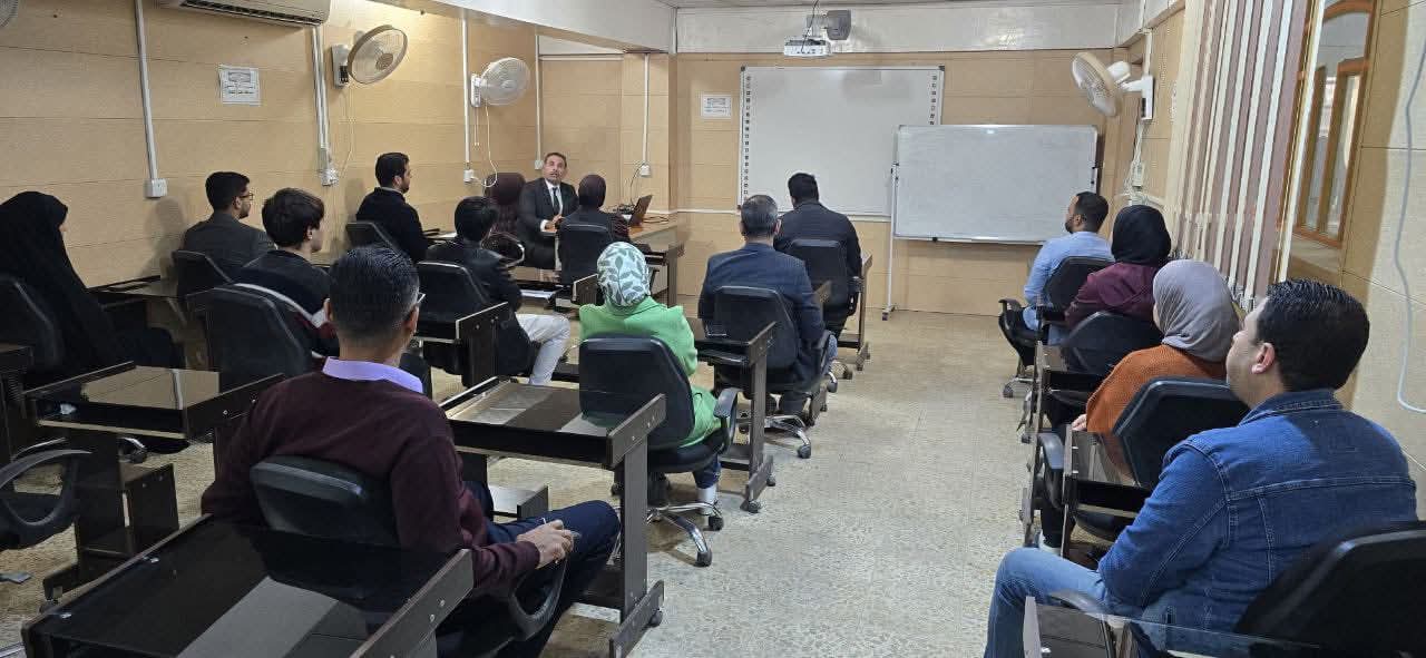 نظم قسم هندسة الطرق والنقل في كلية الهندسة بجامعة القادسية دورة علمية تخصصية بعنوان (أهمية طريقة تاكوجي في تحديد واختبار العناصر الأساسية المثلى في المواد والاختبارات الهندسية) وذلك على قاعة التعليم المستمر حاضر فيها م.د. سامر حامد مالك